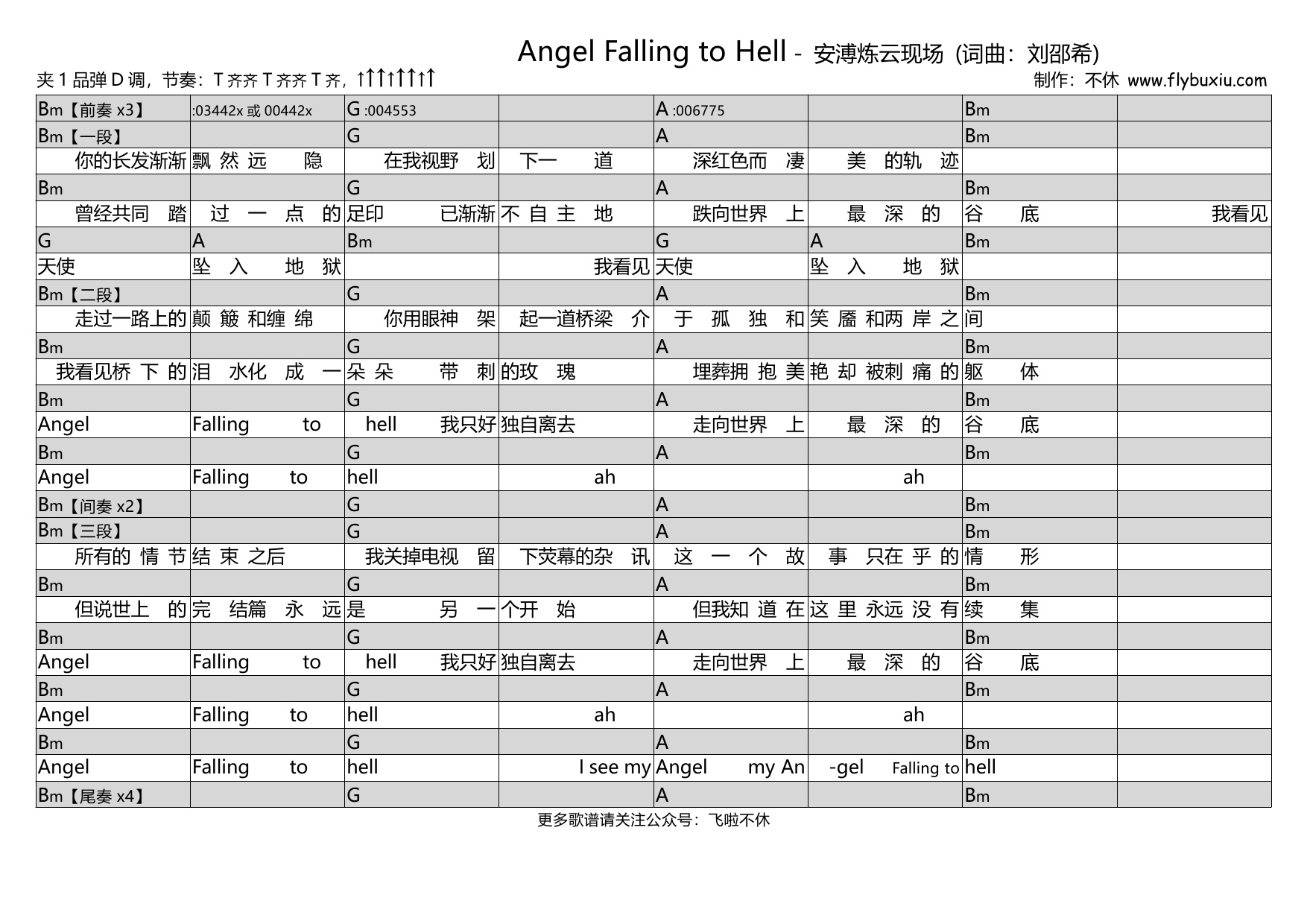 【吉他谱】Angel Falling to Hell – 安溥炼云现场
